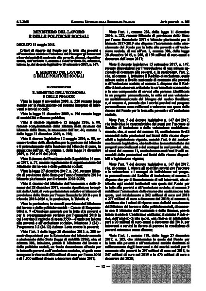 decreto 18 maggio riparto risorse contrasto povertà 2018