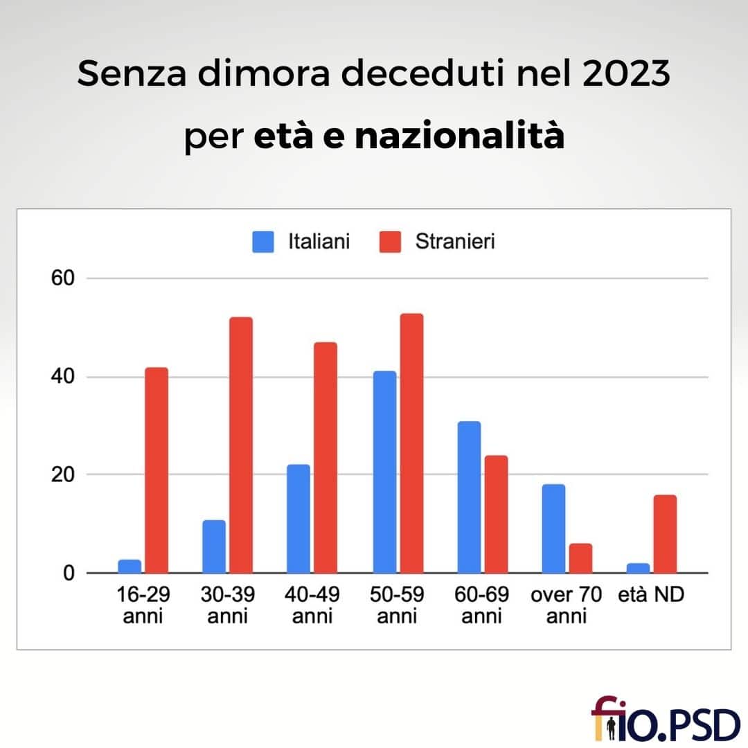 Dai dati del 2023 emerge che lo scorso anno i mesi invernali hanno rappresentato la stagione più dura per chi non può contare su un alloggio adeguato. In questo periodo dell’anno infatti i decessi sono stati considerevolmente più frequenti, arrivando a coinvolgere oltre 130 persone.